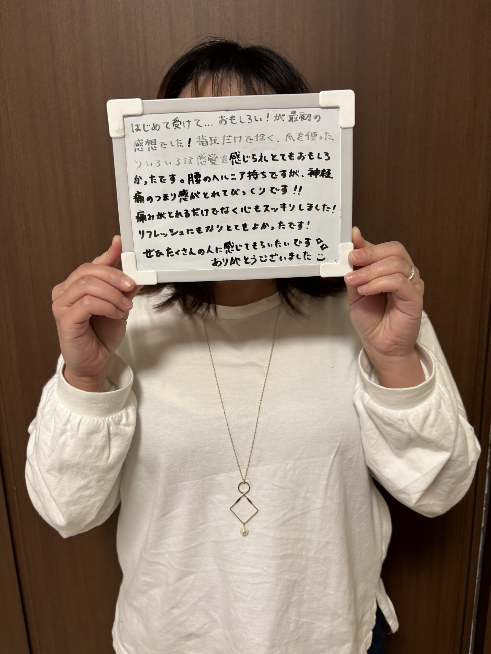 長年悩まされている腰の痛みが少しでも開放され、ホッとほぐれる時間を過ごしていただくことができだのであれば、とてもうれしいです。